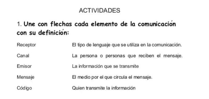 Ejercicios Elementos de la Comunicación - Contenido educativo