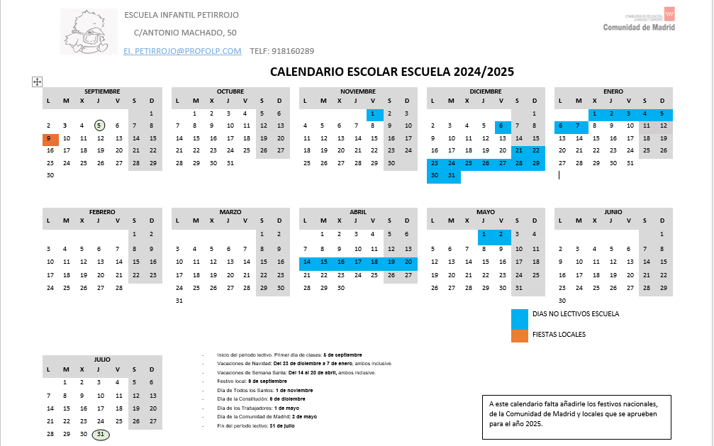 CALENDARIO ESCOLAR 24-25