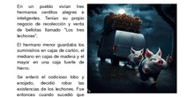 Durante la semana del libro del 2023 los alumnos realizaron una actividad que consistía en actualizar cuentos clásicos incorporando situaciones de hoy en día, como ubicaciones, tecnología etc. Las ilustraciones fueron creadas con IA.