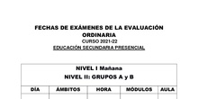 Exámenes convocatoria Ordinaria Secundaria Presencial