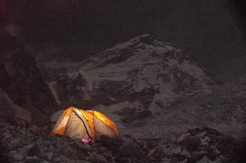 Tiendas de campaña iluminadas de noche