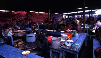 Puestos de comidas en la Plaza del Mercado de Chichicastenango, - Contenido educativo