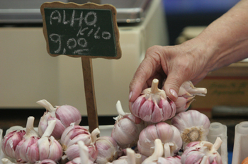 Puesto de ajos en el mercado de abastos de Sao Paulo, Brasil - Contenido educativo