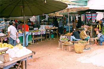 Mercado abierto en Vientiane, Laos - Contenido educativo