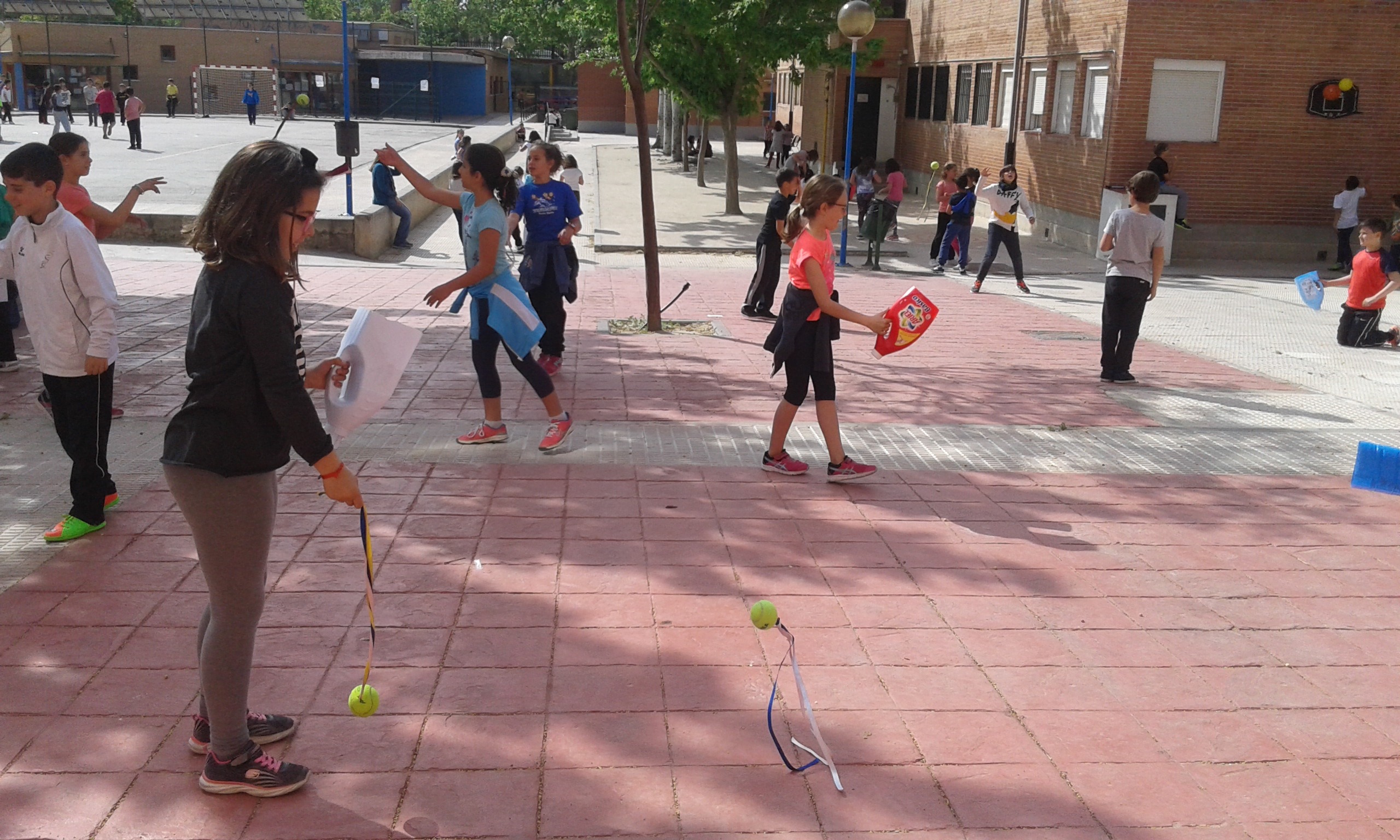 fabricamos pelotas voladoras y receptóbolos.Jugamos en el patio 1