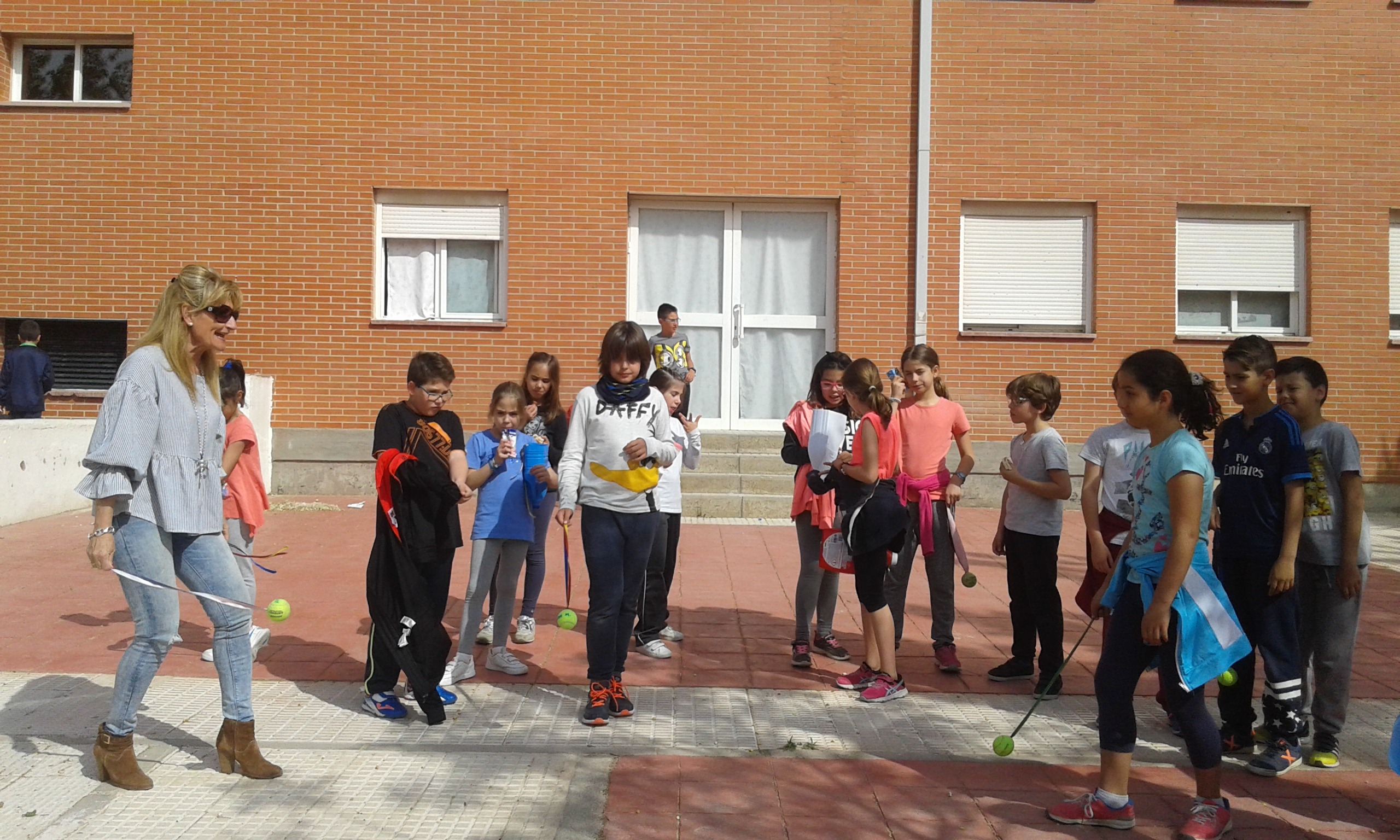 fabricamos pelotas voladoras y receptóbolos.Jugamos en el patio 7