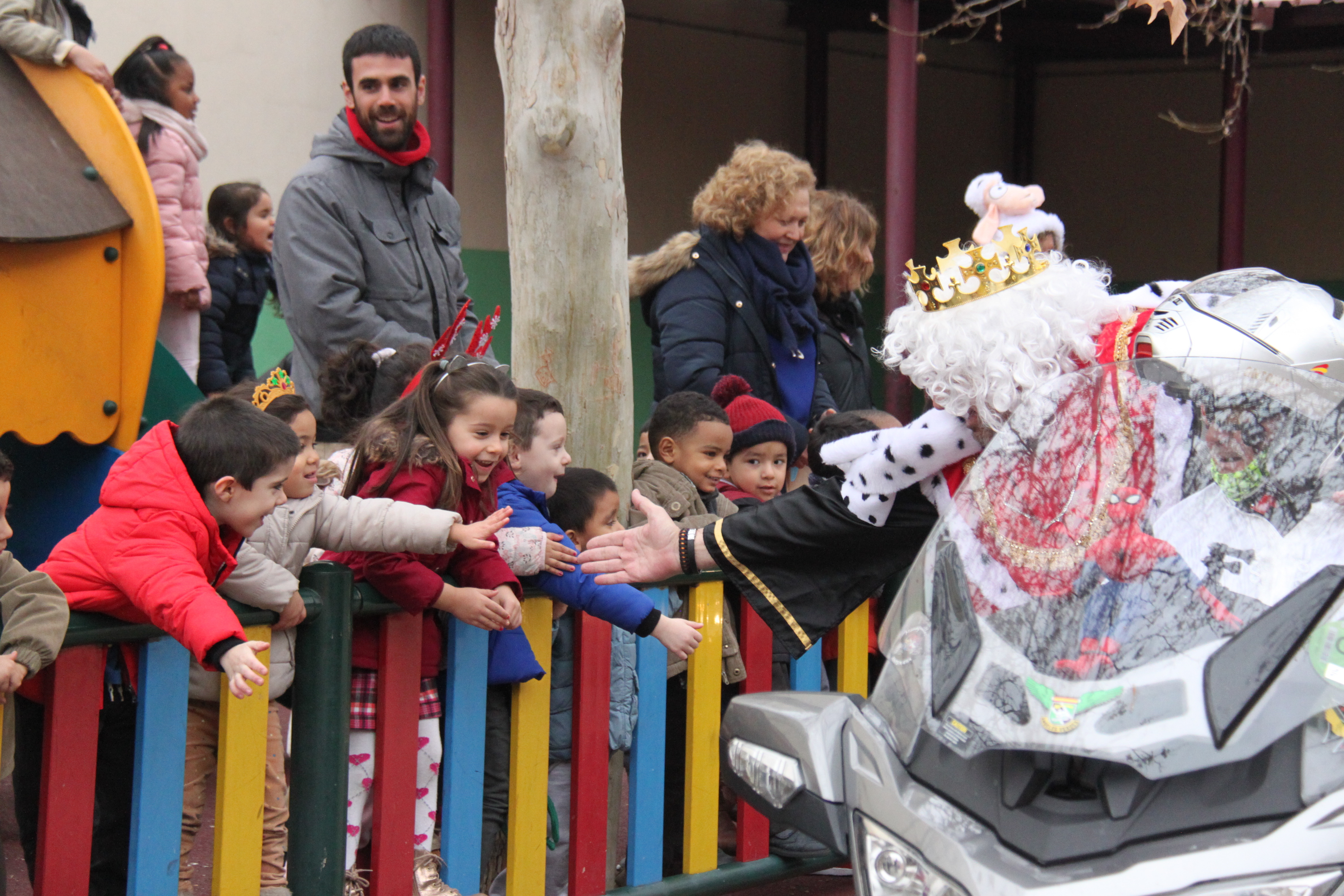 Visita de sus Majestades los Reyes Magos al colegio Luis Bello en moto 2018 17