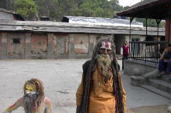 Sadus (Hombres sagrados) que piden limosnas en el patio de los t - Contenido educativo