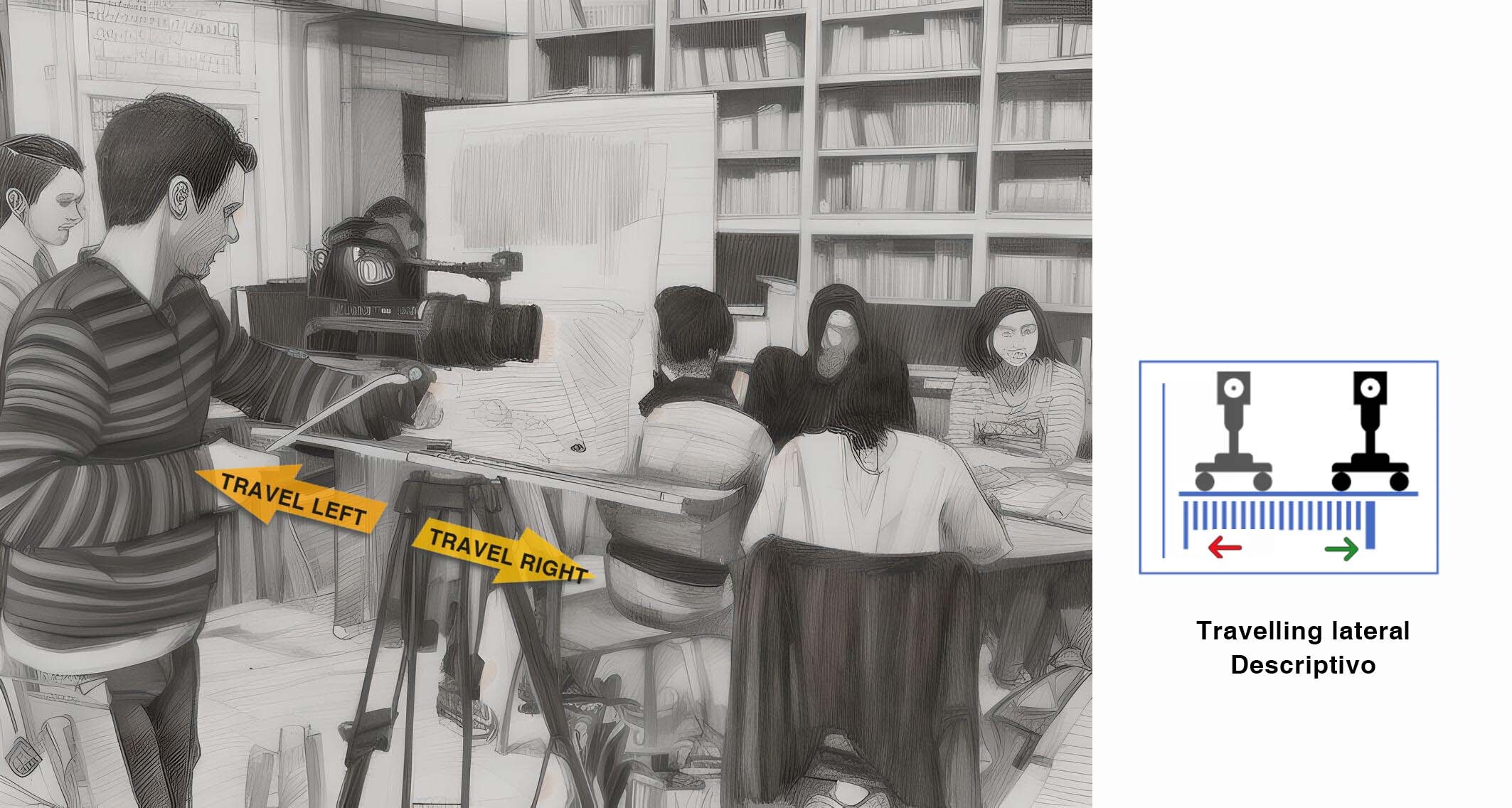 Movimiento de cámara a izquierda o derecha sobre el mismo plano.