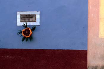 Placa conmemorativa y flores