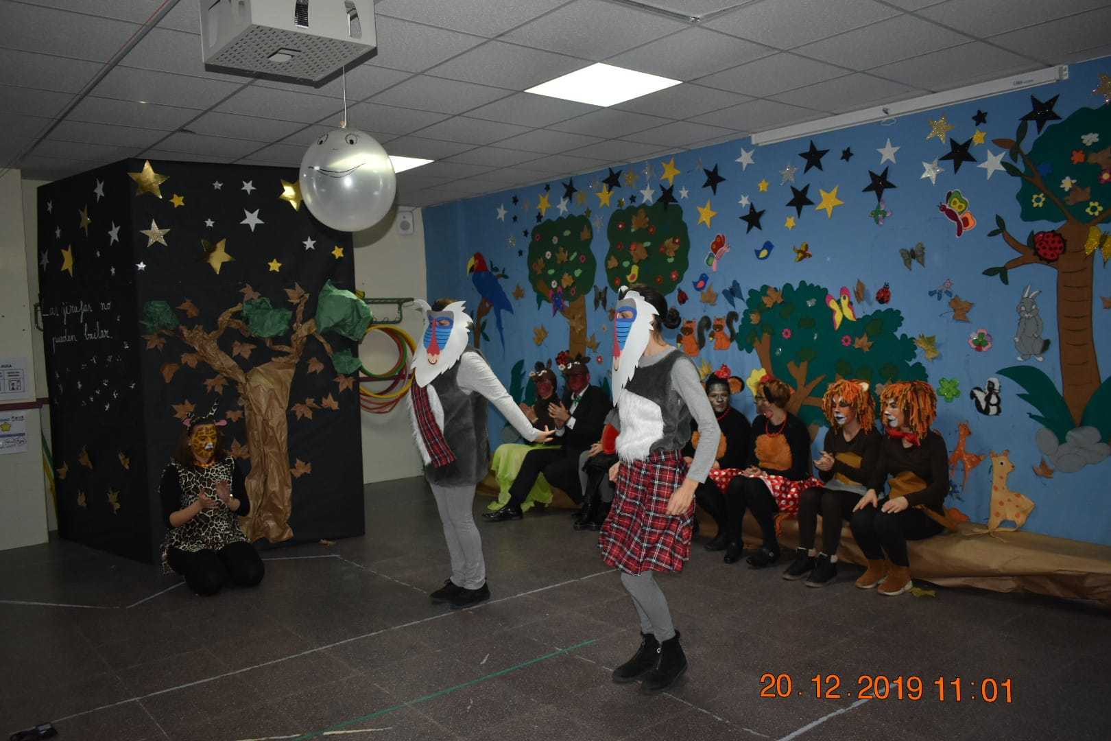 - Madres, padres y familiares de los alumnos/as del CEIP El Jarama representan el cuento "Las jirafas no pueden bailar" de Giles Andreae con motivo de la fiesta de Navidad 2019 que se realizó el 20 de diciembre de 2019.