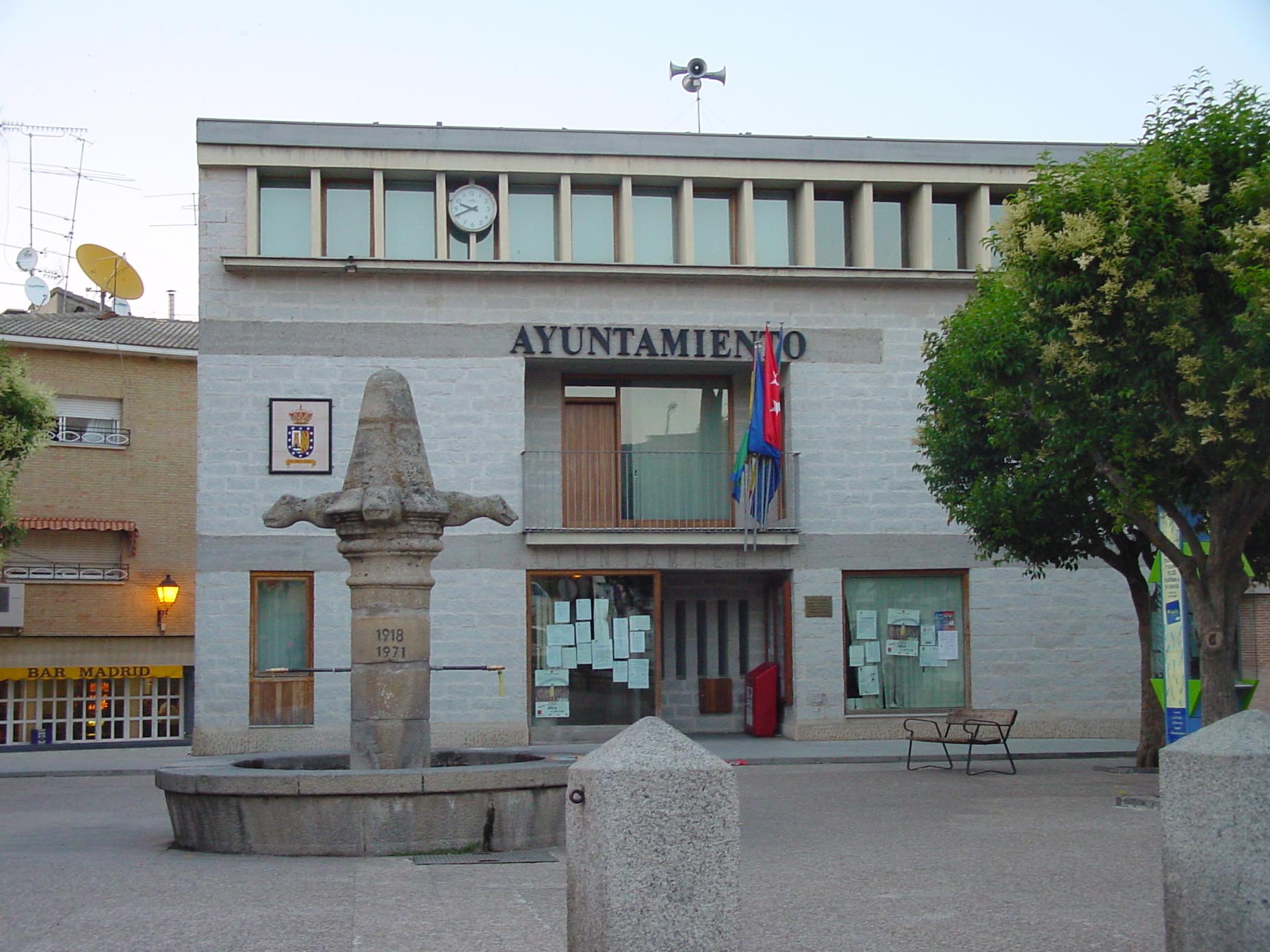 Ayuntamiento y fuente en Pelayos de la Presa