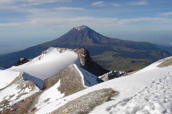 Vista del volcán Popocatepetl (5600m) desde el Iztaccihuatl