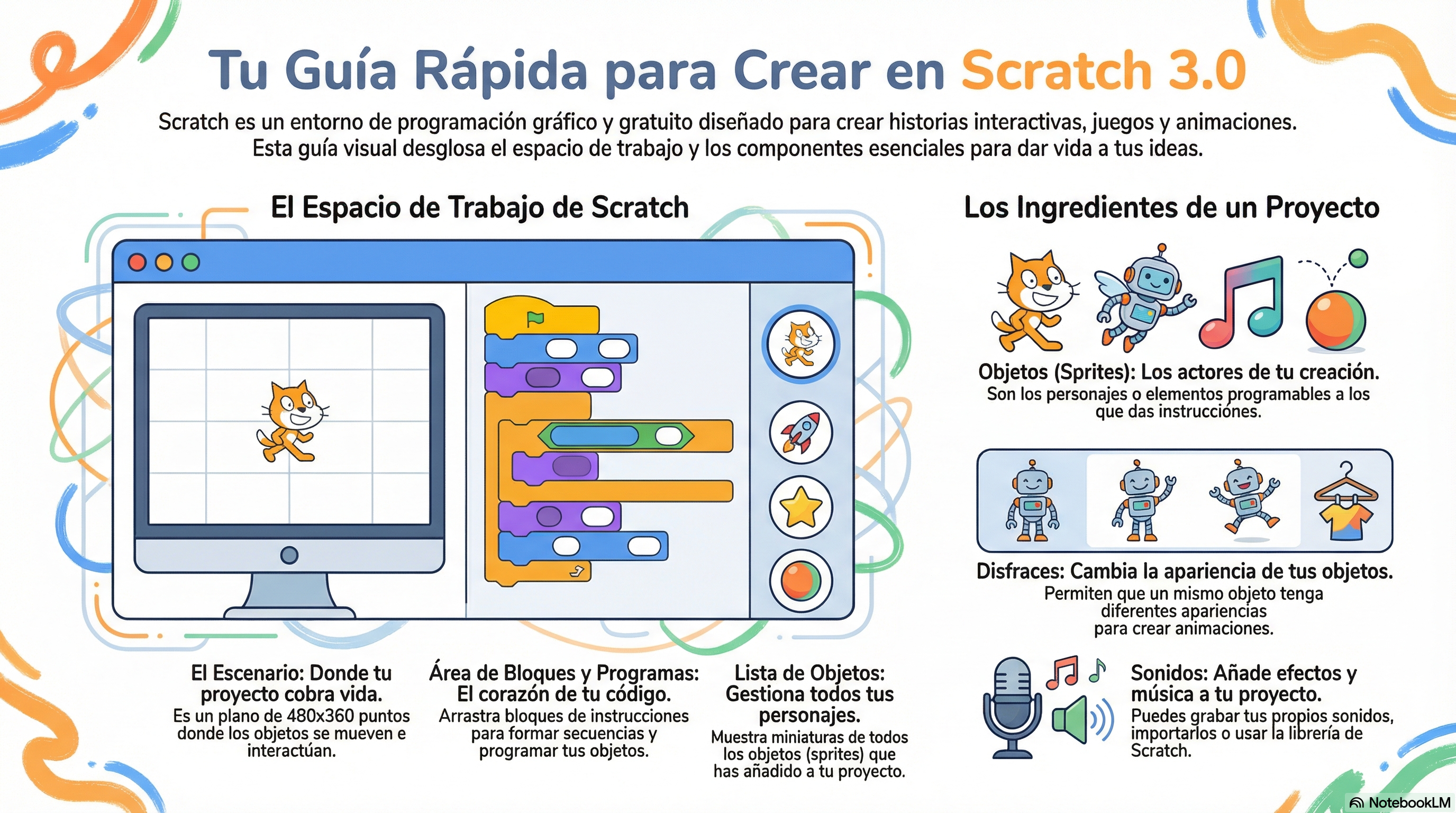 Infografía Scratch primeros pasos - Contenido educativo
