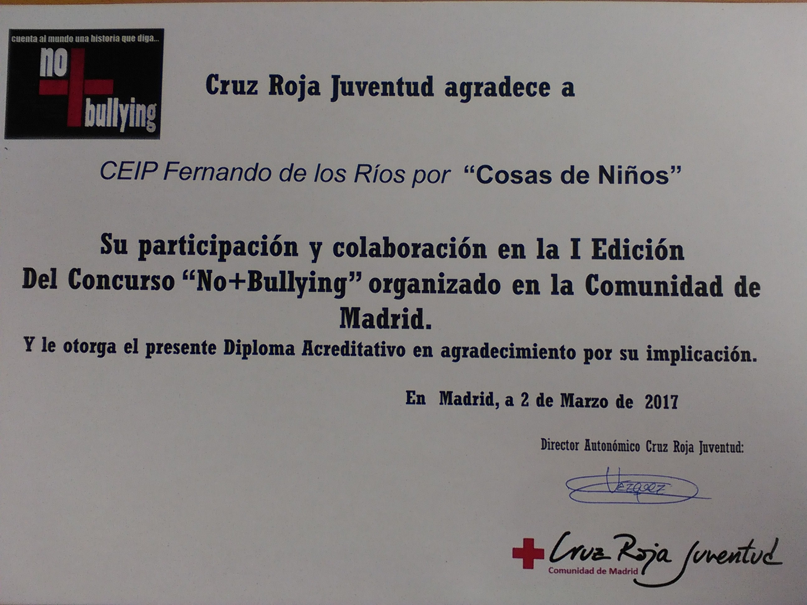 Premio Concurso No+Bullying Cruz Roja 2017_Ceip Fernando de los Ríos