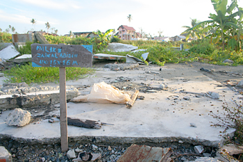 Cartel reivindicando propiedad, Melaboh, Sumatra, Indonesia