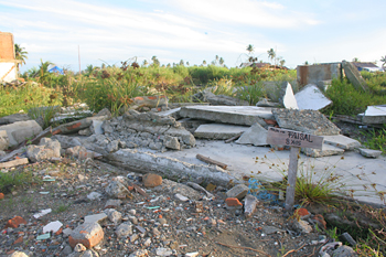 Cartel reivindicando propiedad, Melaboh, Sumatra, Indonesia