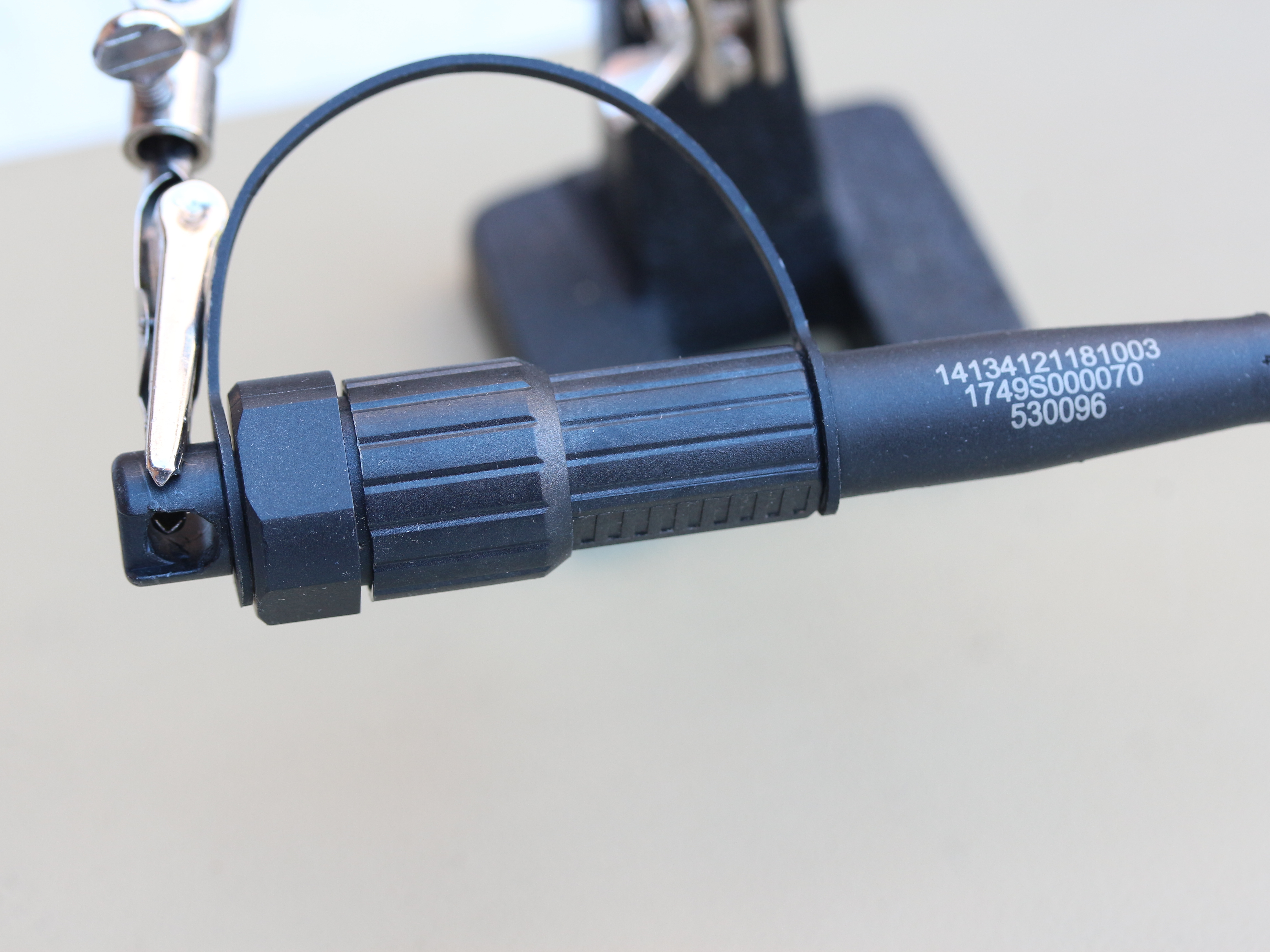 - Detalle de la caperuza de protección de un cable de fibra óptica antes de conectarlo en el CTO.