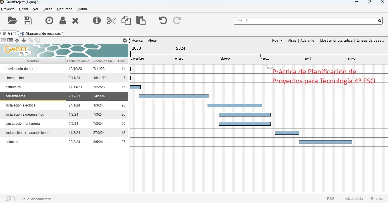 Imagen del tutorial del programa de planificador de proyectos GANTT