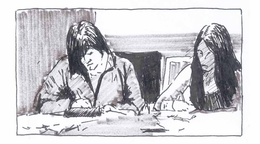 Dibujo de escena sobre práctica de continuidad.