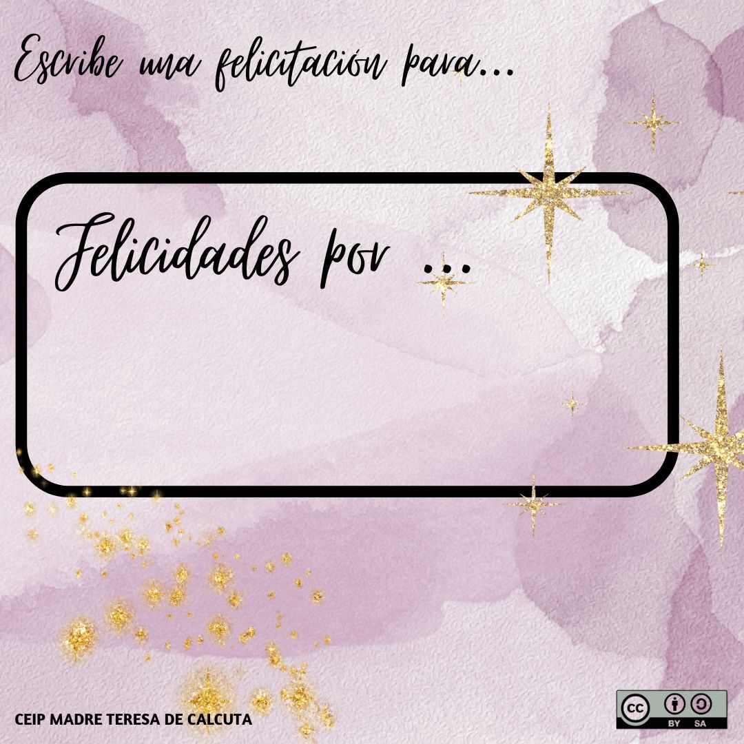 Felicidades por... a cada participante se le reparte una tarjeta con el nombre de un compañero, en ella tiene que escribir una felicitación para esa persona, comenzará escribiendo “Te felicito por…” después se recogen todas las tarjetas y se entrega a cada persona a la que va dirigida la felicitación, que leerá en voz alta.