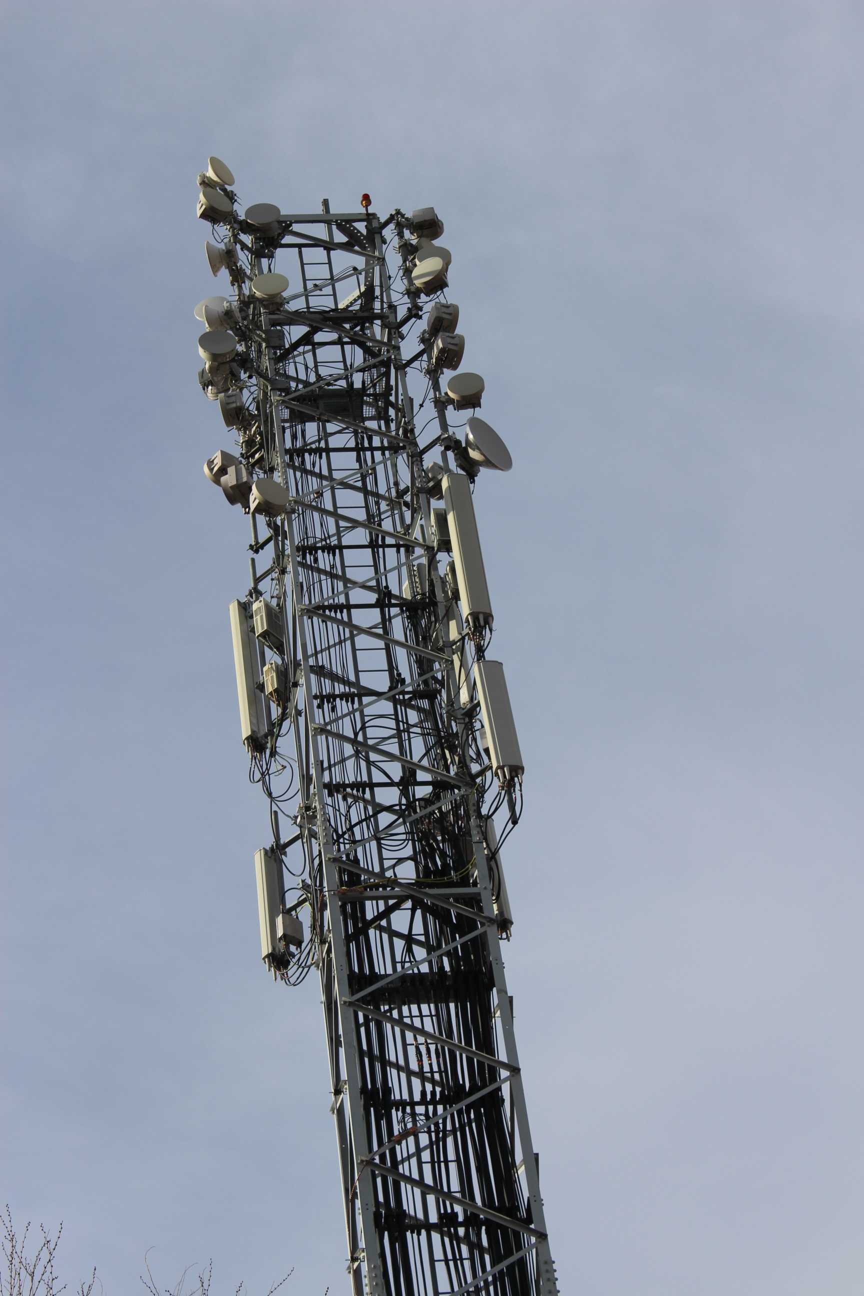 Torre de telefonía móvil en la que convergen múltiples radioenlaces para configurar una estación RNC