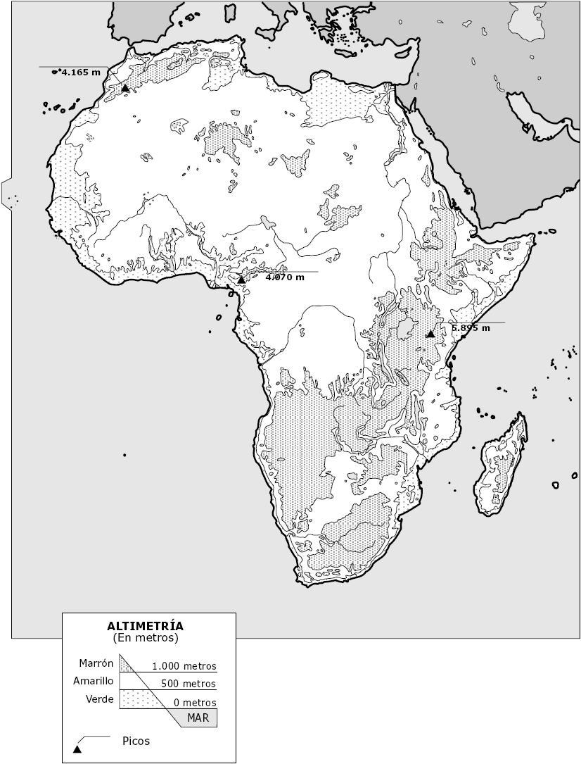 Mapa fisico Africa mudo - Contenido educativo