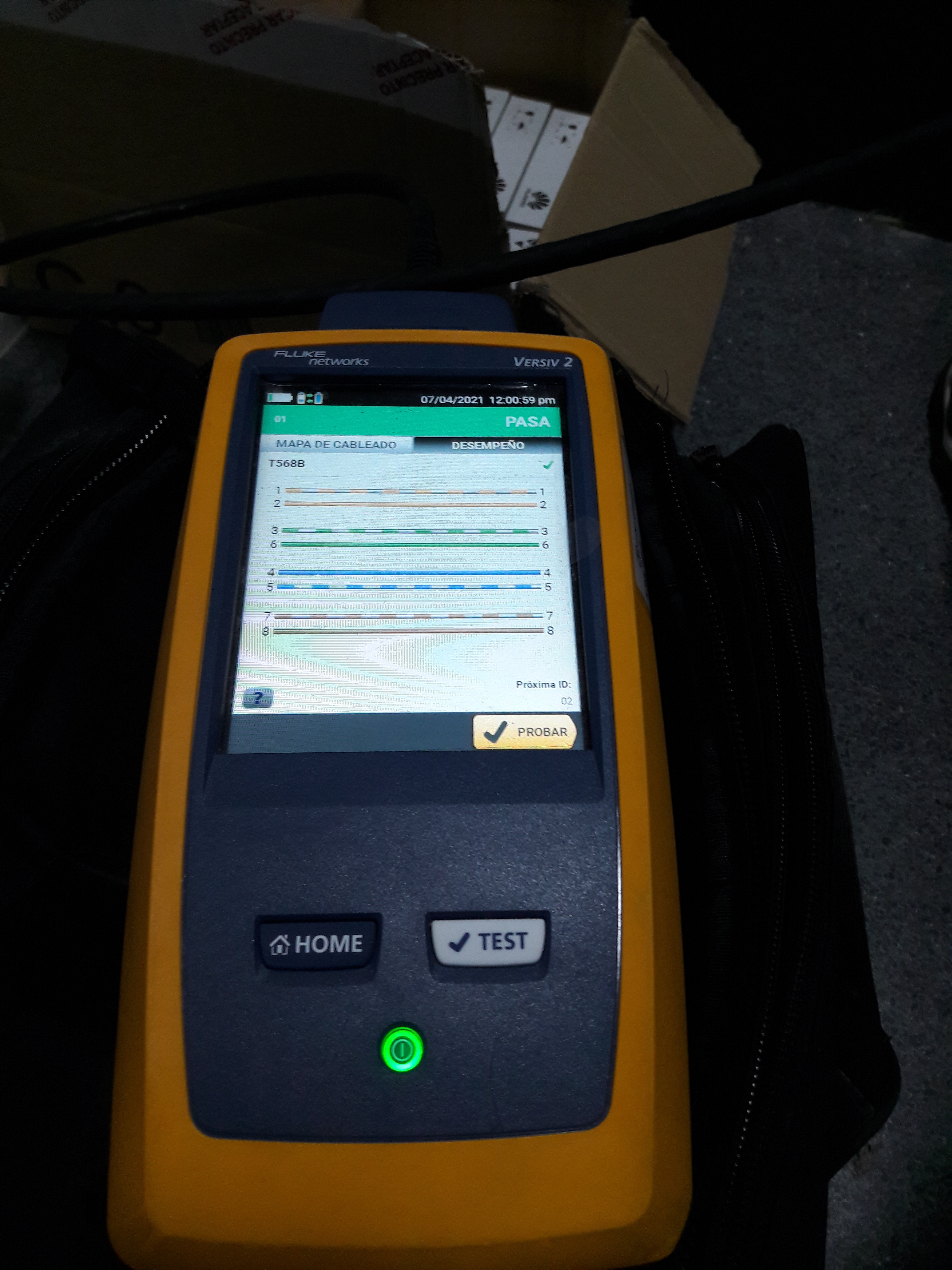 Equipo certificador de cable CAT6 tras finalizar el test