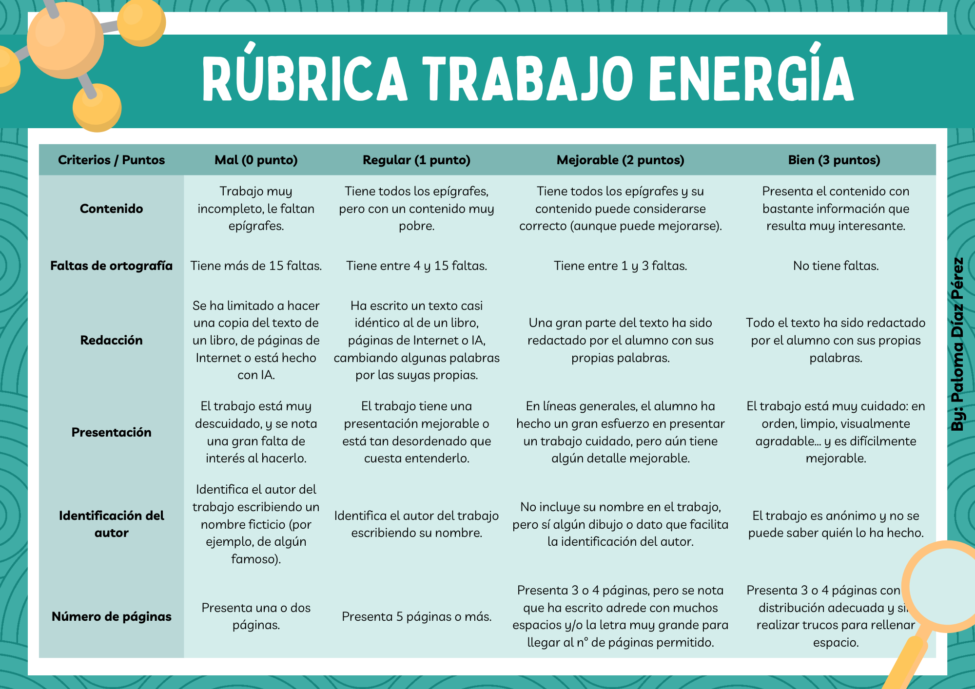 Rúbrica para evaluar el trabajo de energias renovables