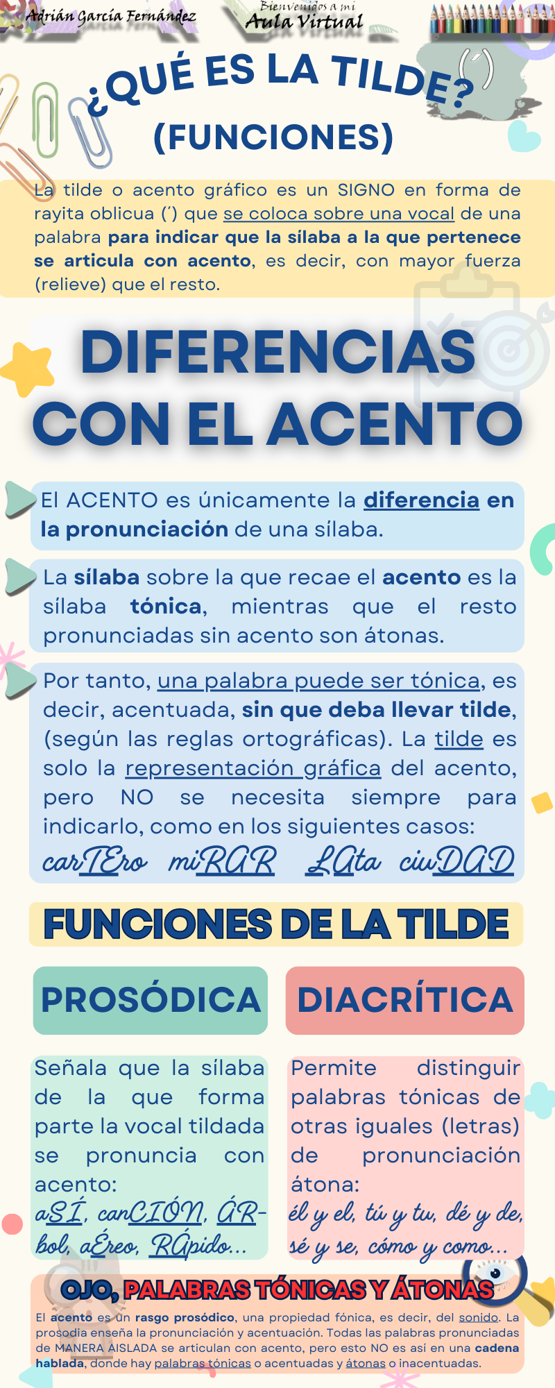 Qué es la tilde. Diferencias con el acento. Funciones (Adrián García Fernández) - Contenido educativo