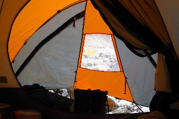 Vista adentro de una tienda de campaña