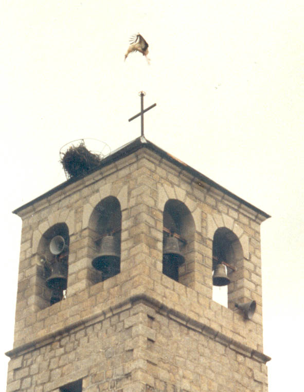 La vuelta de la cigüeña al campanario de la Iglesia de Mijares (Avila) después de muchos años de abandono del nido