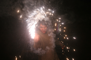 Chico juega con fuergos artificiales, Ubatuba, Sao Paulo, Brasil - Contenido educativo