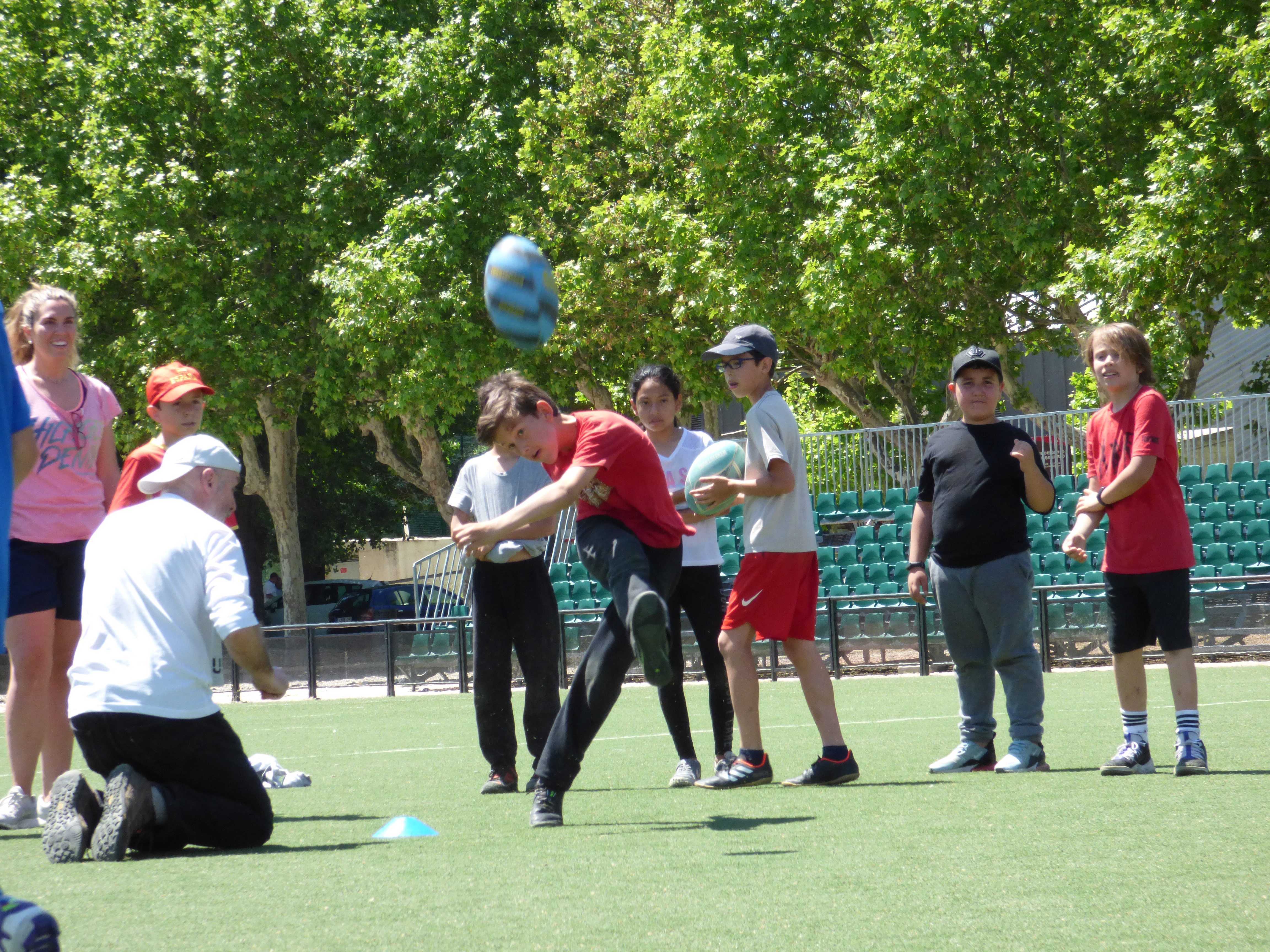 Nos fuimos con Jesús al "Parque Sindical" a realizar una clase magistral de Rugby. Mucho calor pero un gran día de deporte y convivencia