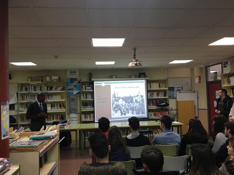 Charla sobre derechos civiles llevada a cabo en el IES Manuel de Falla por un diplomático de la embajada de EEUU
