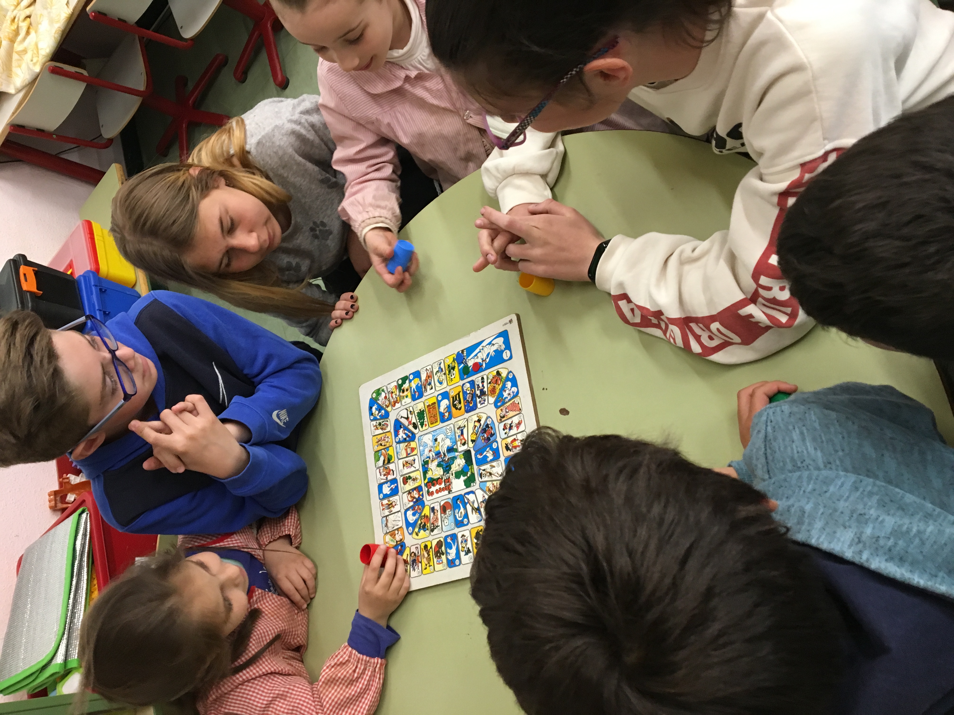 Nuestros alumnos de sexto desempolvaron los juegos de mesa para pasar un rato divertidísimo con los peques de cinco años.