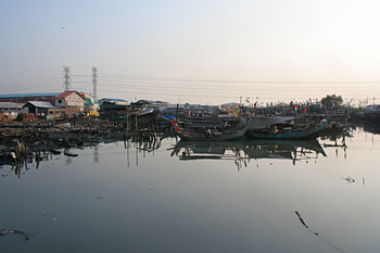 Viviendas en el embarcadero, Jakarta, Indonesia