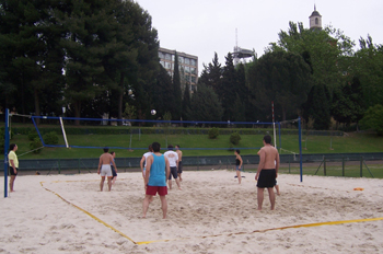 Chicos jugando al voley-playa