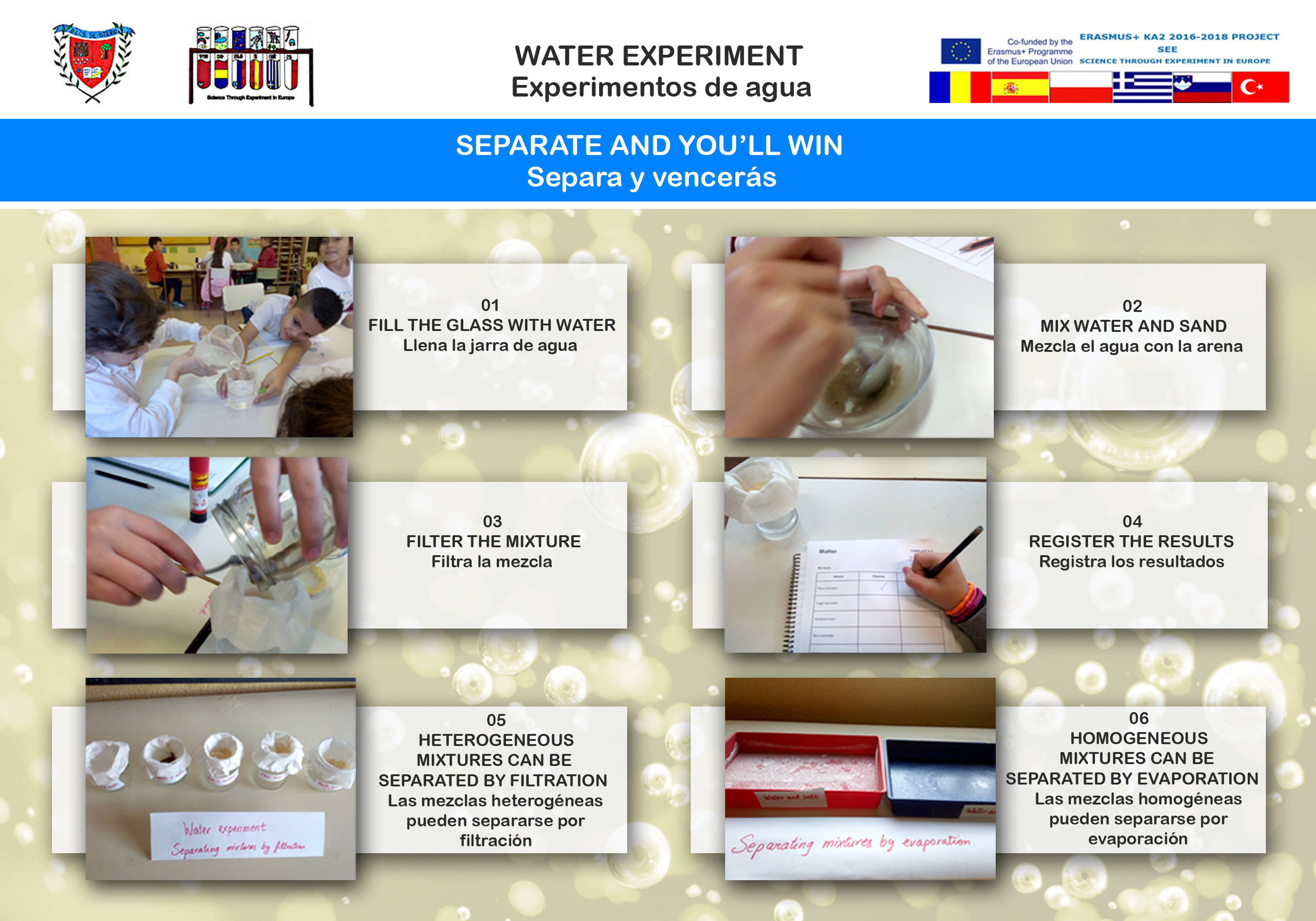 Experimento sobre el agua enmarcado dentro del proyecto Erasmus + Science through experiment in Europe realizado por el CEIP Blas de Otero 2016-2018