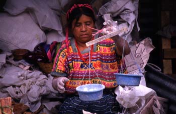 Vendedora con báscula rudimentaria en el mercado de Antigua, Gua - Contenido educativo