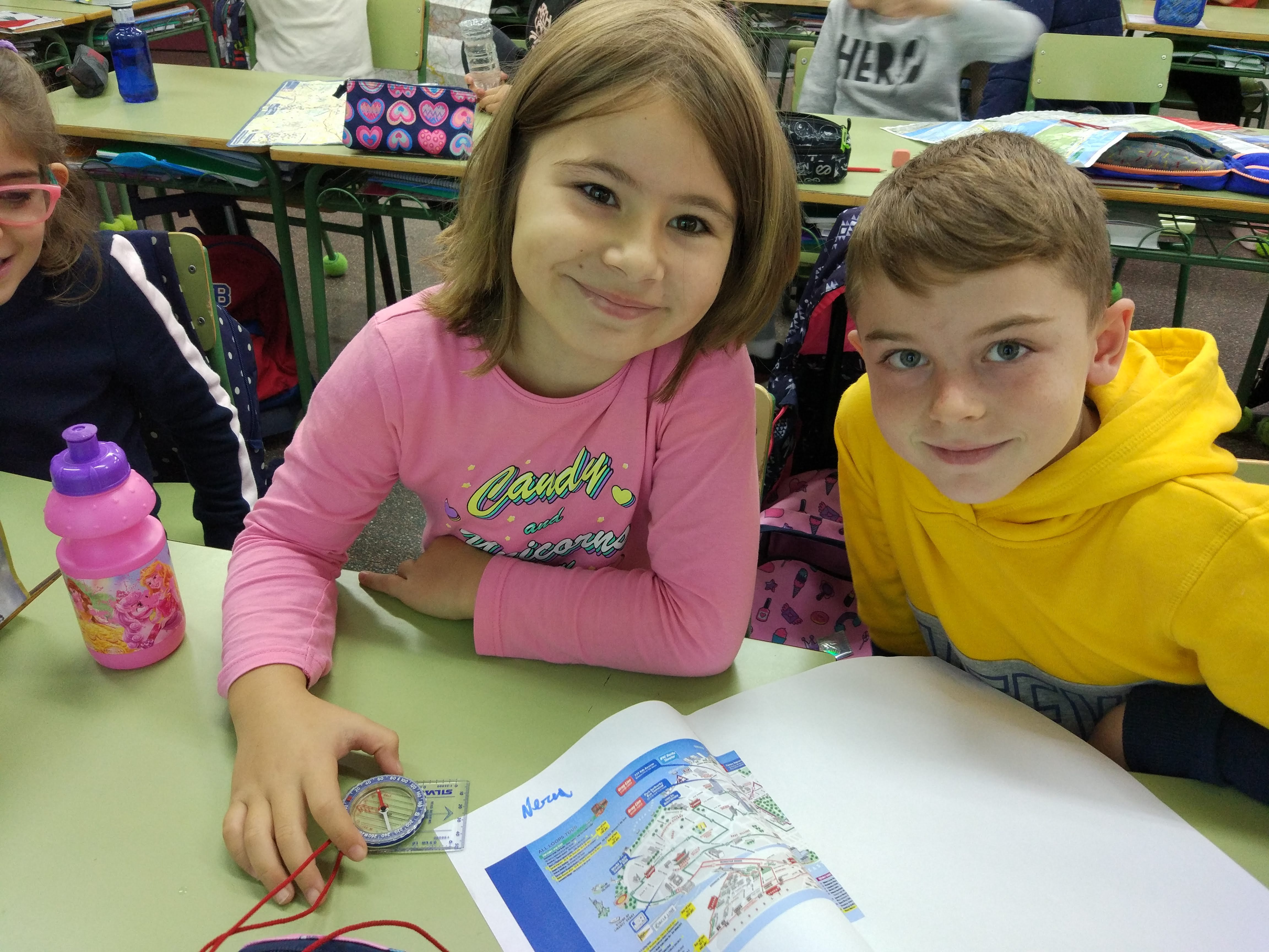 Orientamos el plano con ayuda de la brújula. Esta actividad es parte de nuestro proyecto de Ciencias Sociales sobre "Orientación en nuestro entorno" de 3º de primaria.