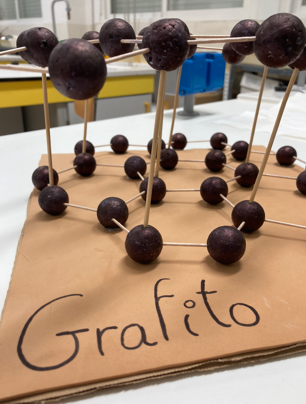 Detalle de la maqueta del grafito donde se aprecia la distancia entre capas de grafeno - Contenido educativo
