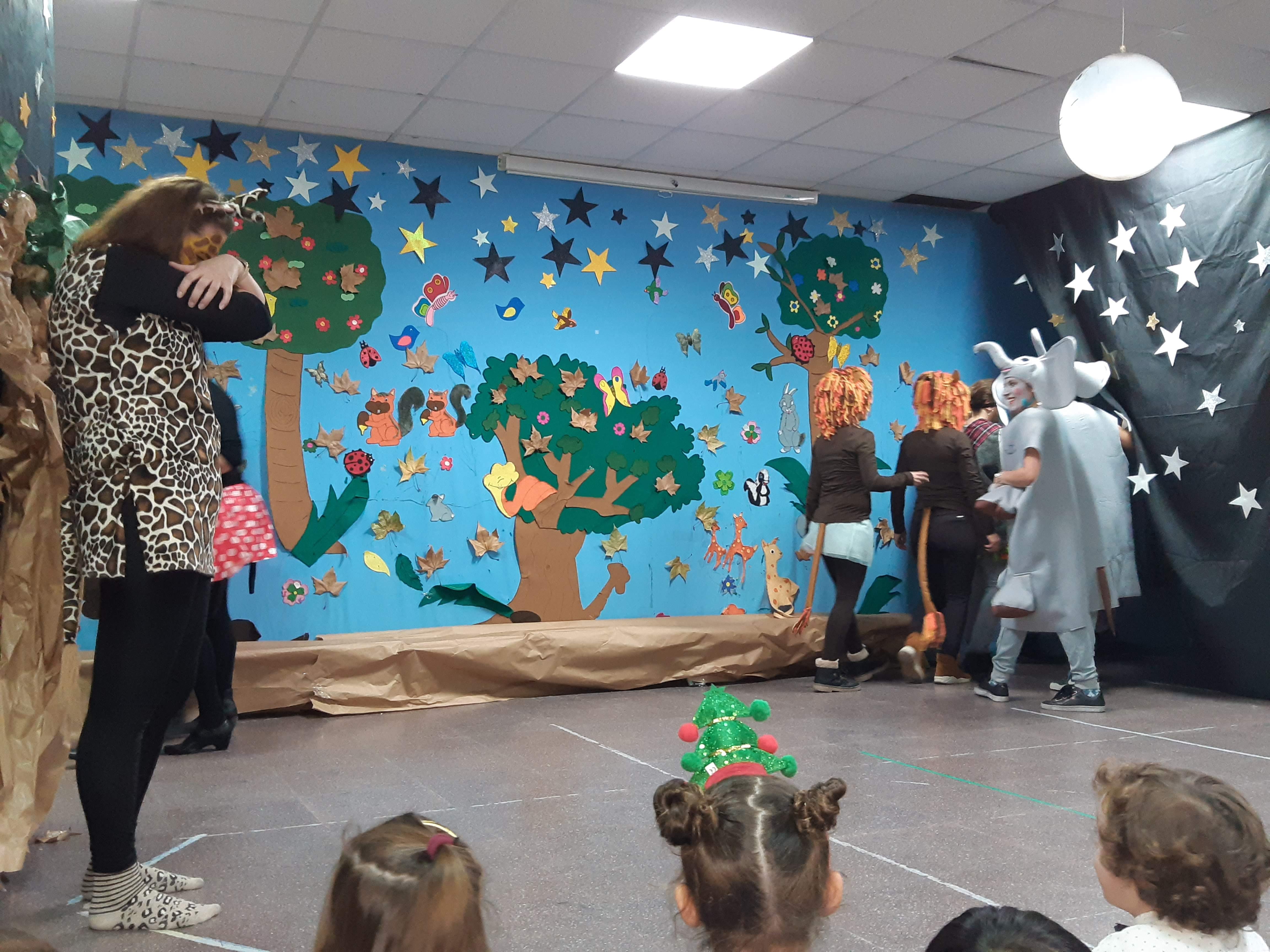 - Madres, padres y familiares de los alumnos/as del CEIP El Jarama representan el cuento "Las jirafas no pueden bailar" de Giles Andreae con motivo de la fiesta de Navidad 2019 que se realizó el 20 de diciembre de 2019.