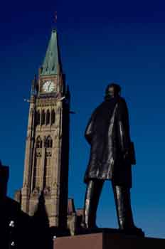 Estatua y torre con reloj