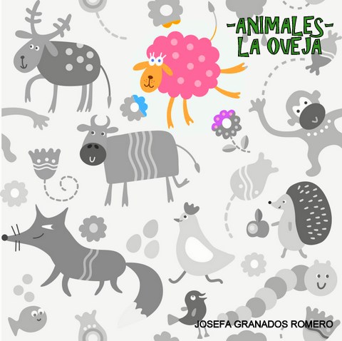 Dibujo de varios animales resaltando en color la oveja.
