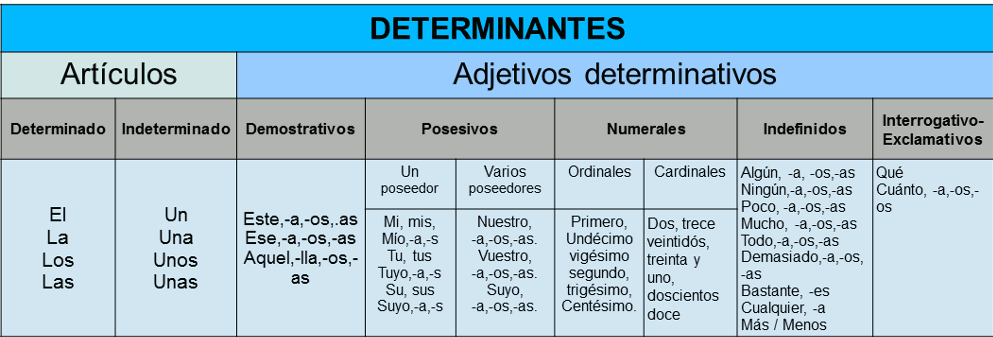 Esquema de los determinantes. Caracterización morfosintáctica y semántica de los determinantes.