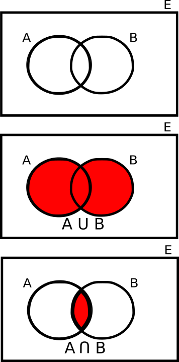Unión e Intersección de dos sucesos en un diagrama de Venn.