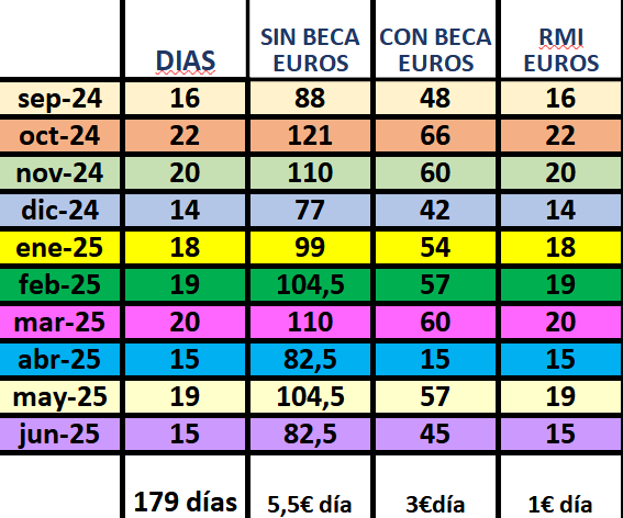 Precios comedor 2024/25