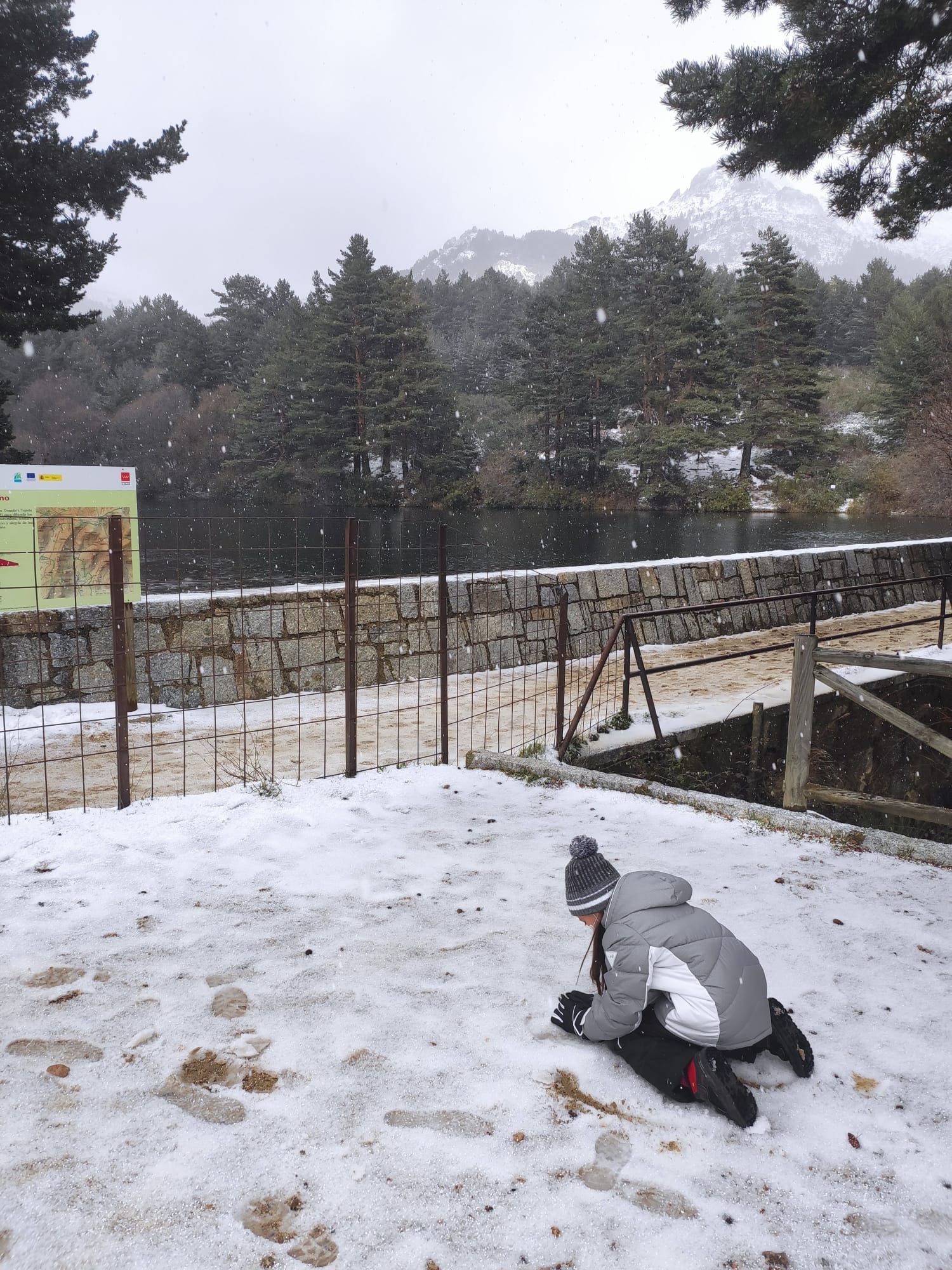 Embalse del Ejército del Aire en La Barranca (Navacerrada) nevando