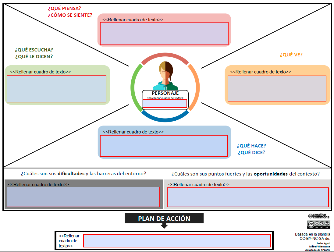 Mapa de empatía para definir los personajes de una historia.